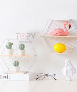 Kệ sắt trang trí treo tường hình lục giác decor phòng khách